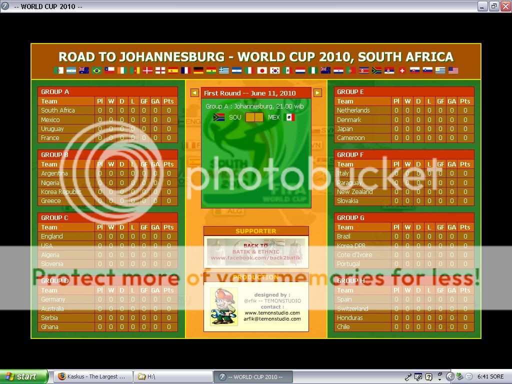Screenshoot Jadwal Piala Dunia 2010